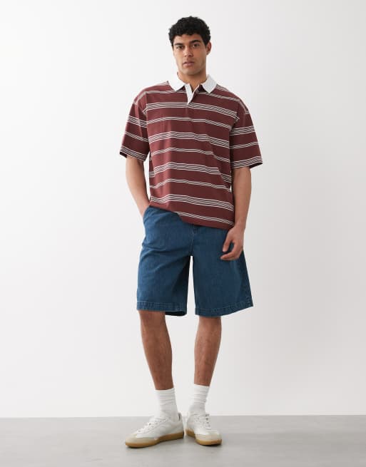 ASOS DESIGN bermuda denim jorts in mid washed blue with pleats