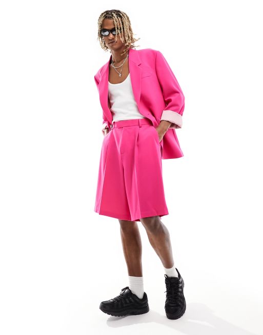 ASOS DESIGN bermuda suit shorts in hot pink crepe