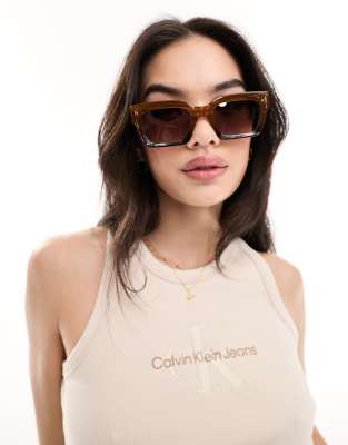 ASOS DESIGN bevel square sunglasses in crystal brown