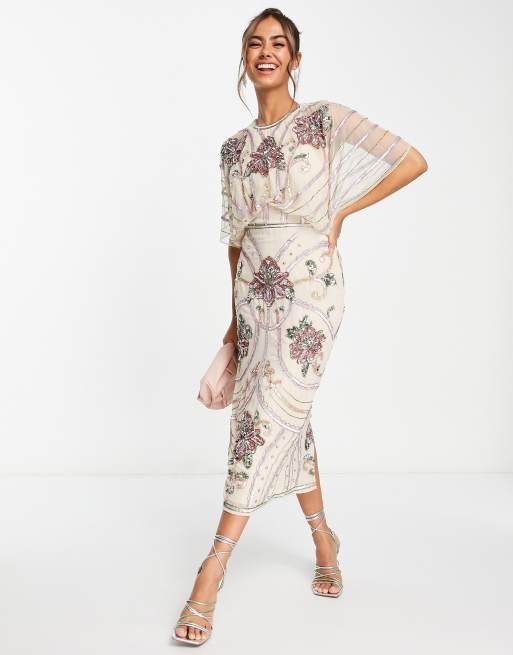 ASOS DESIGN blouson midi dress with art nouveau embellishment