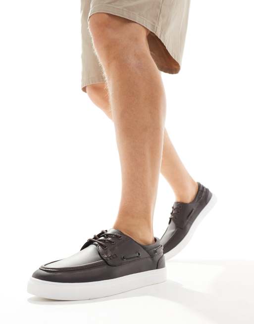 ASOS DESIGN boat shoes in brown faux leather