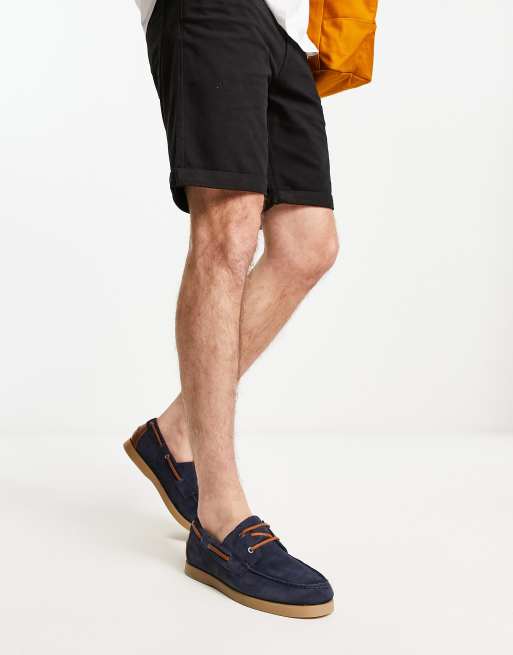 ASOS DESIGN boat shoes in navy suede with natural sole