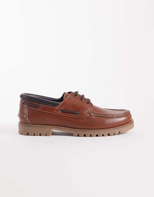 ASOS DESIGN boat shoes with cleated sole in tan leather