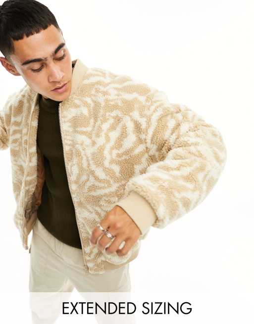 ASOS DESIGN borg bomber jacket with tiger print in ecru