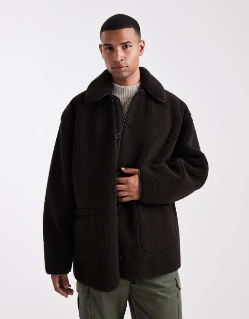 ASOS DESIGN borg coach jacket in brown
