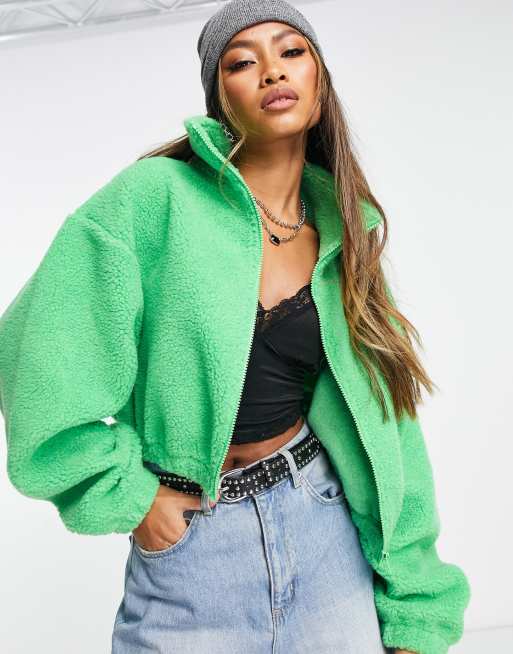 ASOS DESIGN borg cropped zip through fleece with batwing sleeve in bright green
