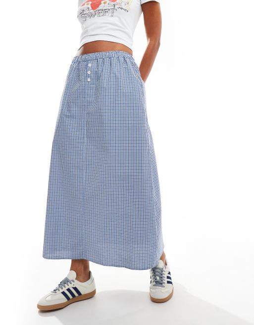 ASOS DESIGN boxer detail midi skirt in check in blue check