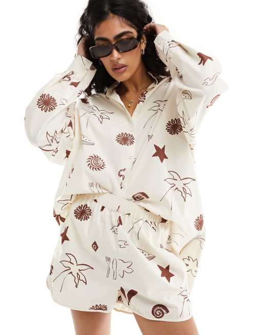 ASOS DESIGN boxer short in brown print co-ord
