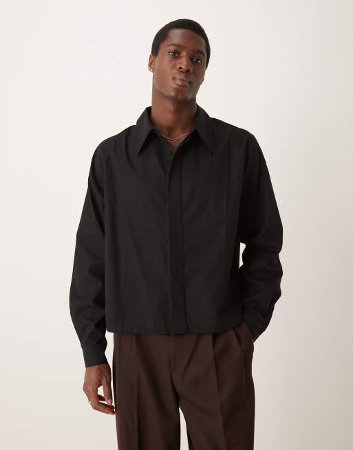 ASOS DESIGN boxy cropped 70s collar poplin shirt in black
