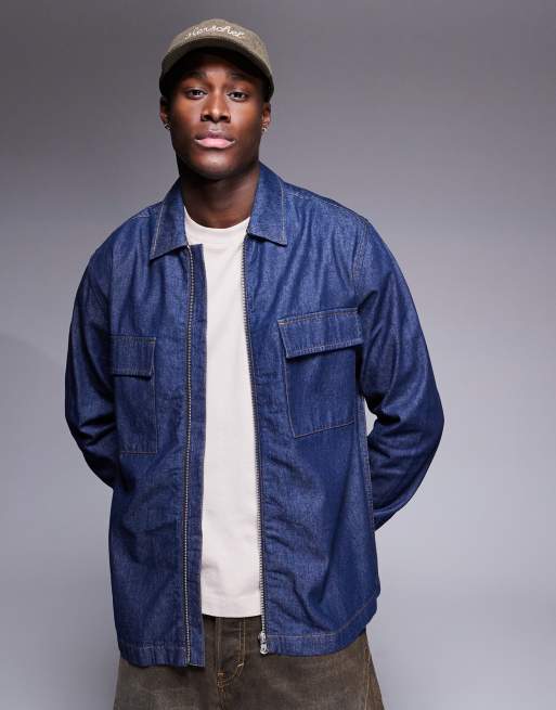 ASOS DESIGN boxy denim overshirt with patch pockets in blue