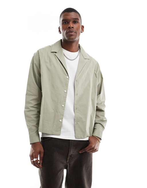 ASOS DESIGN boxy oversized poplin shirt with deep revere in pale green