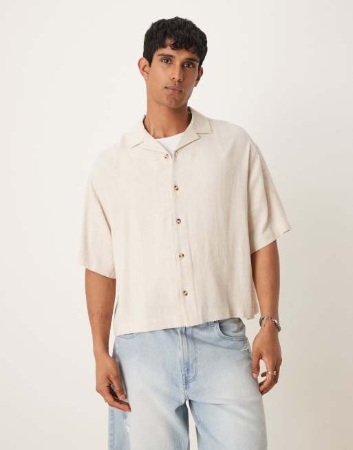 ASOS DESIGN boxy oversized revere linen blend shirt in stone