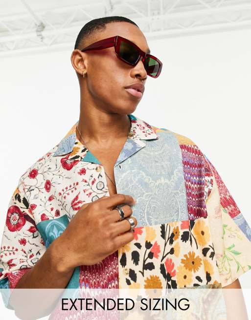 ASOS DESIGN boxy oversized revere linen mix shirt in patchwork floral print