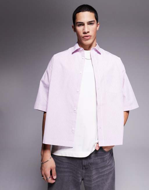 ASOS DESIGN boxy oversized shirt in pink and white stripe