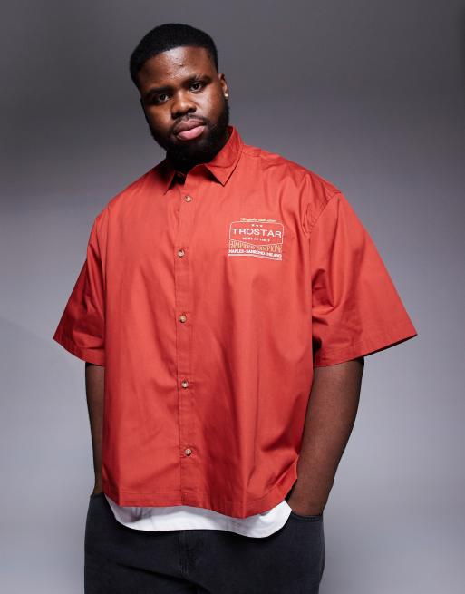 ASOS DESIGN boxy oversized shirt in red with chest print