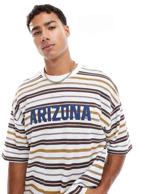 ASOS DESIGN boxy oversized striped t-shirt with chest applique in white and brown