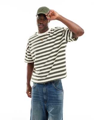 ASOS DESIGN boxy oversized t-shirt in beige striped towelling