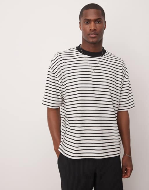 ASOS DESIGN boxy oversized t-shirt in black and white ribbed striped