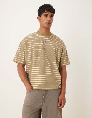 ASOS DESIGN boxy oversized t-shirt in textured khaki stripe