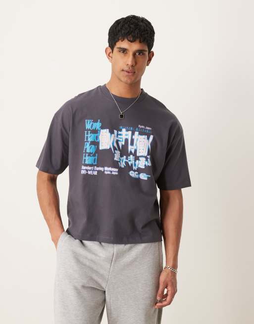 ASOS DESIGN boxy oversized t-shirt souvenir front graphic in charcoal