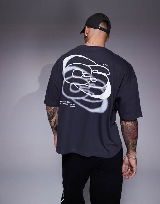 ASOS DESIGN boxy oversized t-shirt with back print in charcoal - CHARCOAL