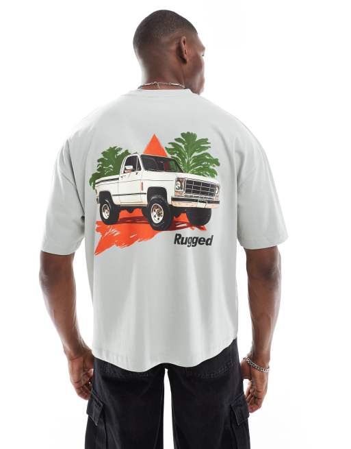 ASOS DESIGN boxy oversized t-shirt with car graphic in light grey