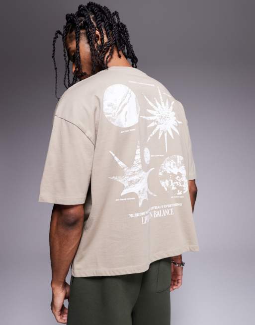 ASOS DESIGN boxy oversized t-shirt with celestial graphic in beige