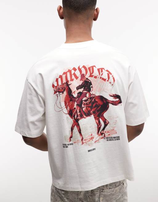 ASOS DESIGN boxy oversized t-shirt with cow boy graphic in cream