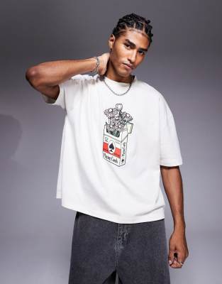ASOS DESIGN boxy oversized t-shirt with flower graphic in off white