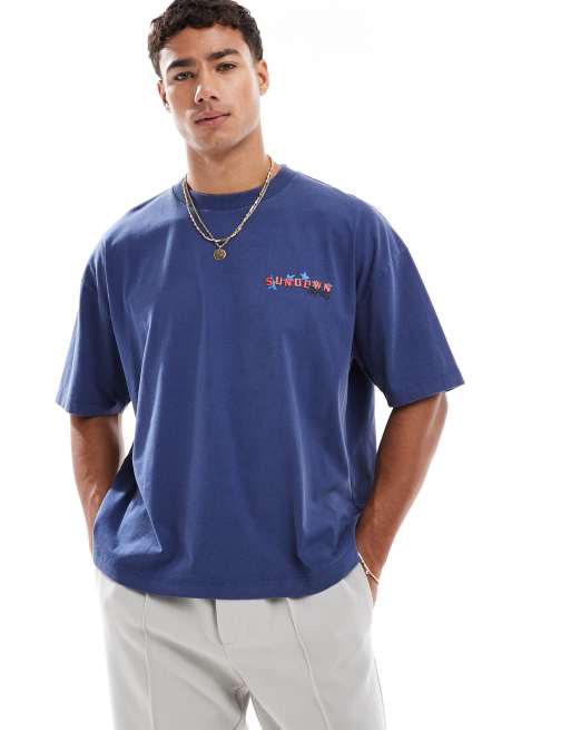 ASOS DESIGN boxy oversized t-shirt with summer graphic in washed blue