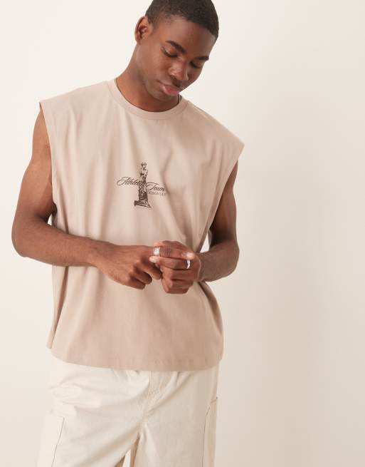 ASOS DESIGN boxy oversized tank with front and back print in stone