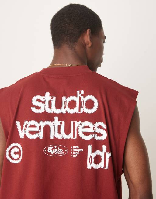 ASOS DESIGN boxy oversized tank with text graphic in red