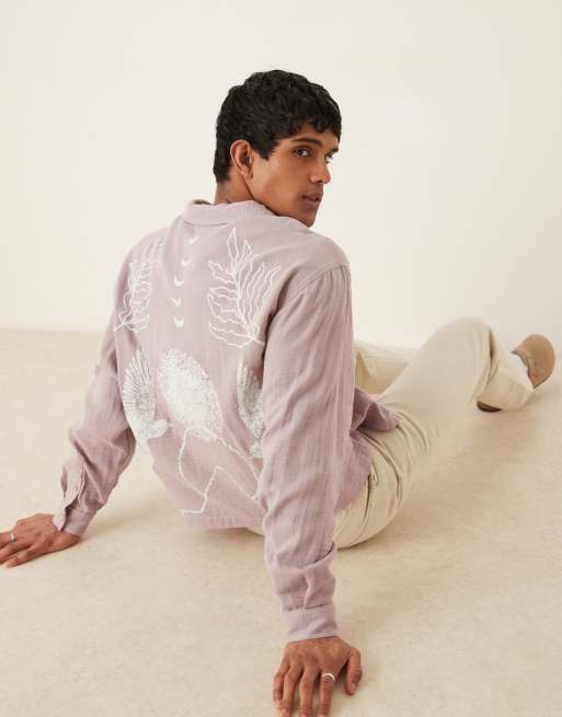 ASOS DESIGN boxy oversized textured shirt with print detail in lilac