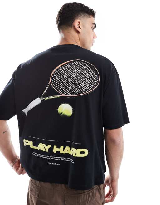 ASOS DESIGN boxy oversized tshirt with sports graphic in black