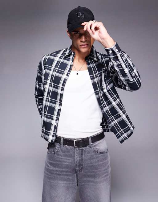 ASOS DESIGN boxy regular shirt in black check