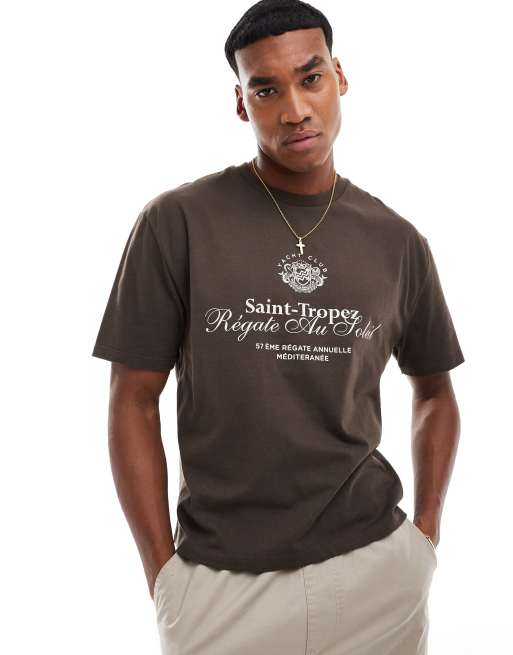 ASOS DESIGN boxy relaxed t-shirt with chest print in brown