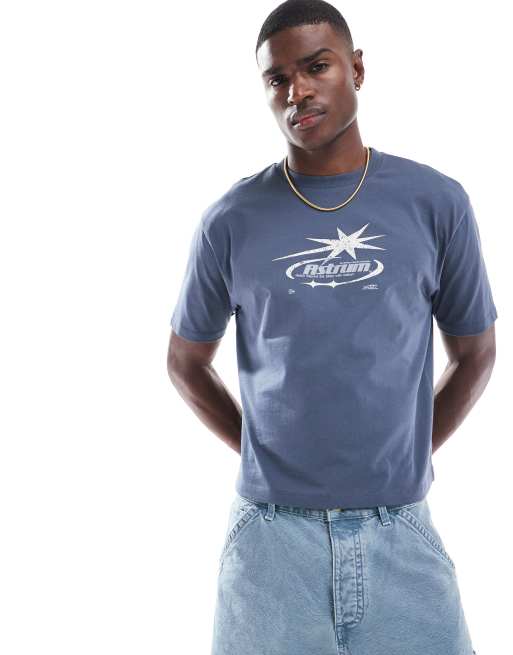 ASOS DESIGN boxy relaxed t-shirt with front print in navy