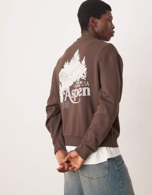 ASOS DESIGN boxy sweatshirt with scenic print in brown