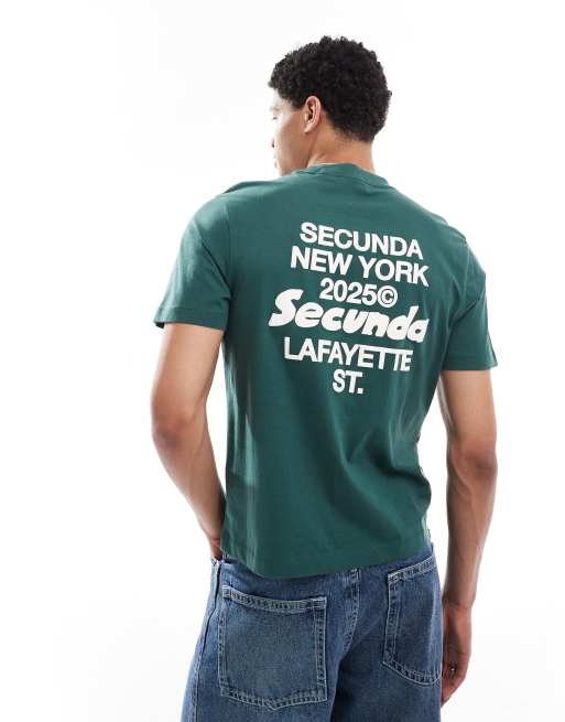 ASOS DESIGN boxy t-shirt with text graphics in green