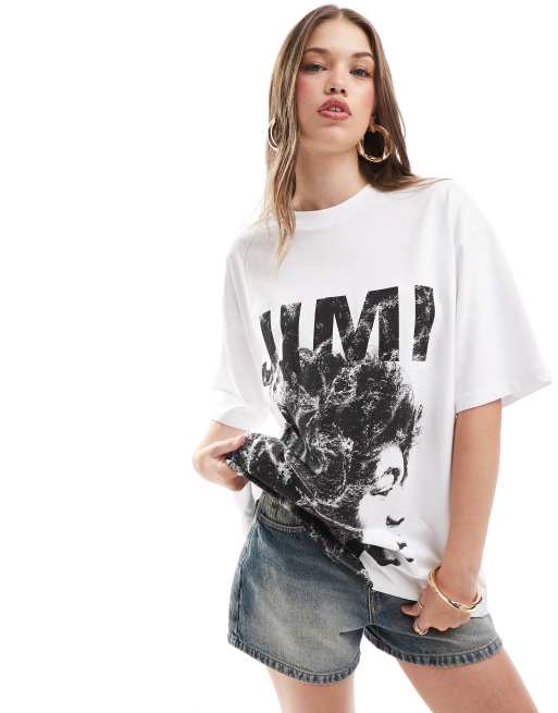 ASOS DESIGN boyfriend fit t-shirt with jimi hendrix licence graphic in white