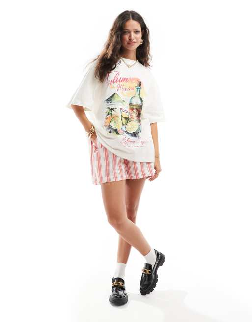 ASOS DESIGN boyfriend fit t-shirt with tequila drink tulum graphic in cream