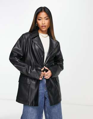 ASOS DESIGN boyfriend shacket in faux leather in black