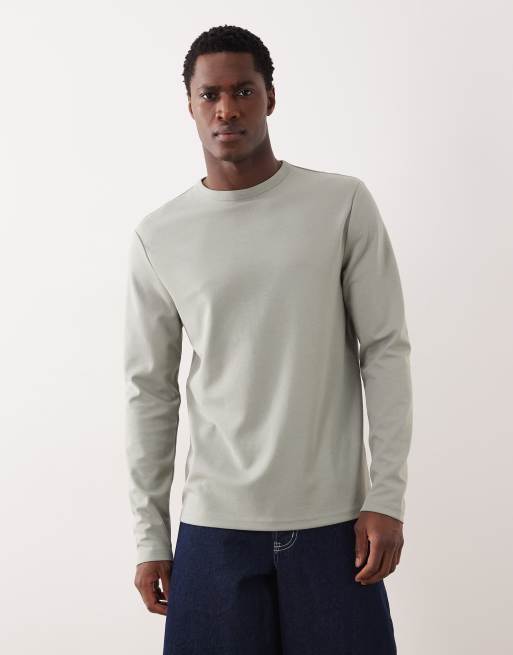 ASOS DESIGN breatheMAX™ heavyweight long sleeve t-shirt in sage cotton blend