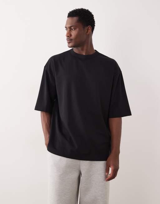 ASOS DESIGN breatheMAX™ heavyweight oversized half sleeve t-shirt in black cotton blend