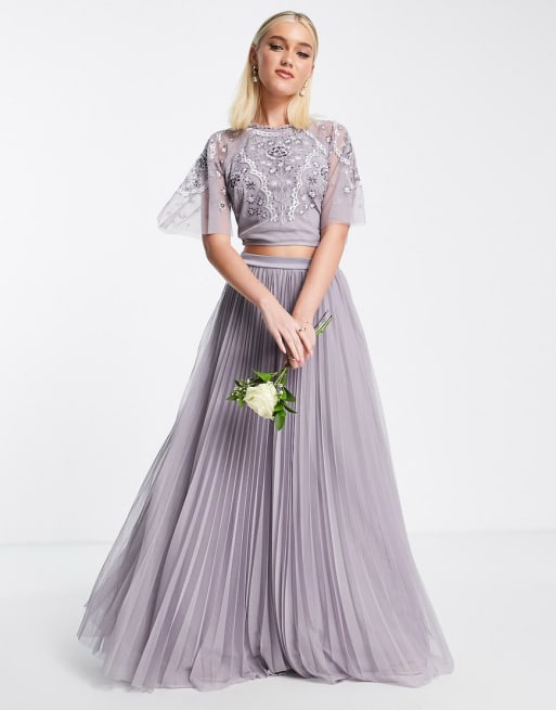 ASOS DESIGN Bridesmaid co-ord floral embroidered top with ribbon back in lilac -