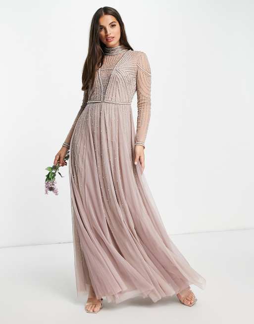 ASOS DESIGN Bridesmaid pearl embellished bodice maxi dress with tulle skirt