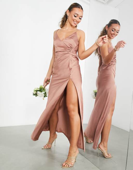 ASOS DESIGN Bridesmaid satin cami maxi dress with drape detail in cinnamon rose