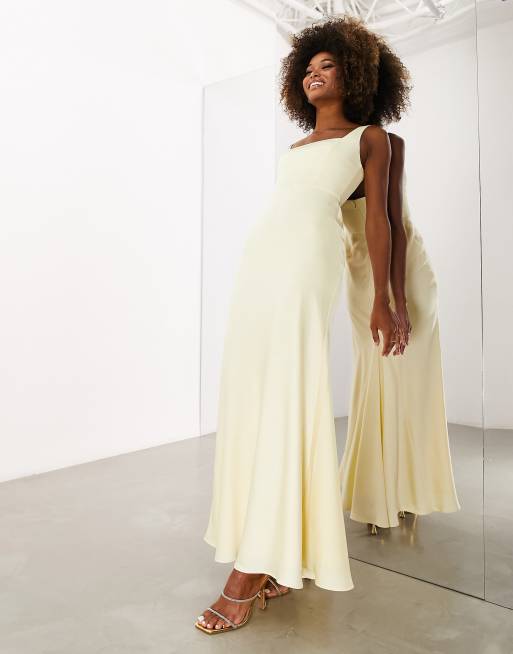 ASOS DESIGN Bridesmaid satin square neck maxi dress in lemon
