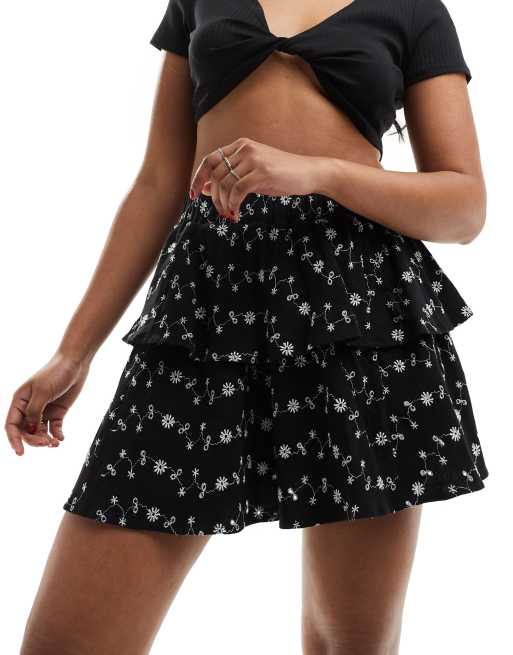 ASOS DESIGN broderie rara mini skirt in black