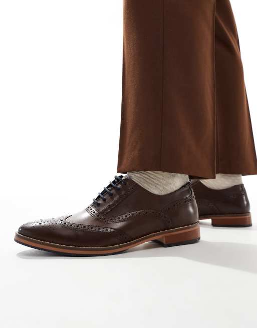 ASOS DESIGN brogue shoes in brown leather with natural sole and colour details